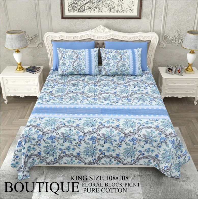 108•108 BLOCK PRINT FLORAL KING size Bedsheet set(1+2)
